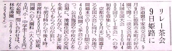 | 「100日400回リレー茶会」 新聞報道記事 |