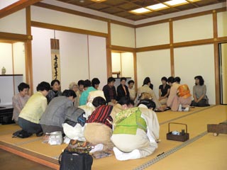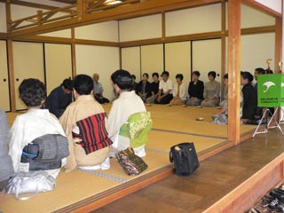 | 好古園では毎日呈茶ボランティアがお茶を差し上げています。このリレー茶会は呈茶ボランティアとしてお席を持たせて頂くことになりました。 その名の通り、池の前にありいつも滝の音が聞こえている「潮音斎」は好古園の見学ルートにあるオープンな茶室です。朝からとても蒸し暑く、いつ雨が降るか分からないようなお天気でしたが、多くの先生方や学生さんが来て下さいました。支部をまたがった5青年部合同の茶会のため、会員同士いつもと違う雰囲気に緊張感と新鮮さを感じました。地元のみの開催ではお目にかかることのない先生方も遠くから足を運んで下さいました。 お席は一般見学者に公開されており、普段目にすることの少ないお席の様子立ち止まってみておられる事もしばしばでした。興味を持たれた方にはお声をかけ、リレー茶会の説明をすると、「一服頂いてよろしいか」とお席に上がって下さる方もありました。」 また、「九州でリレー茶会に参加してきました。」「ここでもリレー茶会してるわ」と言いながら声をかけて下さる方もいらっしゃいました。無事に終了しましたことに感謝します。 |