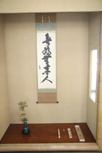 引渡し式には、近畿第一ブロックの中西副ブロック長と大藪全国委員補のお二人がお見えになり、駅のアナウンスが流れる騒々しい中、ことばの唱和から始まった引渡し式は終始、厳粛なムードが漂い、北陸信越ブロックの大樋ブロック長、野崎幹事長からそれぞれのコースのお軸とお茶杓が引き渡されました。