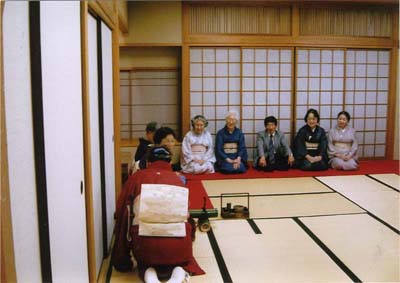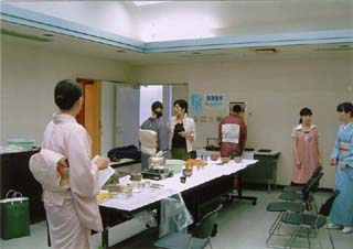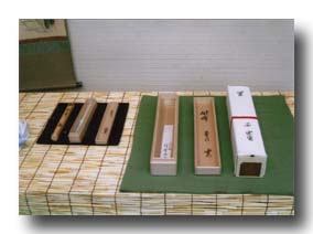 | お席は、濃茶・薄茶点前の1席のみで、お客様は延岡分会の先生方をお呼びしました。濃茶・薄茶ともに御家元好みを使用いたしました。 お茶会のテーマにつきましては、北朝鮮ミサイル発射のニュースがとびこんですぐということもあり、全国大会のテーマ“祈り”をふまえ、“平和の祈り”、“朝鮮との文化交流をもう一度見つめ直す”という2点を掲げ、お道具は出来る限り高麗陶を使用しました。 また、地元色を出すために、延岡市の木工家に、地元の材を作った木地香合と煙草盆を出品いただき、使用しました。 (感想) ・平日の夜ということで、会員の応援がままならず、1席のみの執行が残念です。 ・御家元の御染筆ならびに大宗匠の御茶杓を、このリレー茶会で初めて使用させていただき、光栄でした。 |