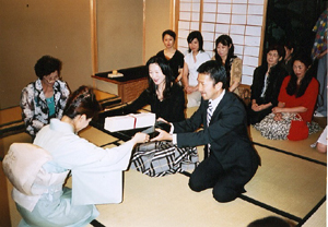 また、市の中心でありながらとても静かな場所で、竹林の中庭は打水により幽玄さが尚一層引き立ち、とても趣のあるお茶会だったとお客様にも大変喜んで頂きました。