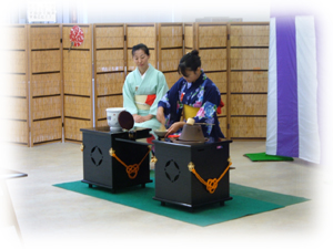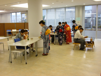 岡山支部青年部連絡会(後楽青年部主幹)と学校茶道協議会との連携で11日のリレー茶会を開催させていただきました。就実大学茶道部の積極的なご協力を得、青年部の方がたじたじといった感じで計画を立てさせていただきました。