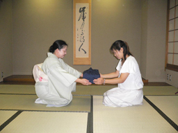 | ○茶会形態 : 納涼茶会 ○参加者 会員 10名、先生 7名、OB他 7名 計24名 ○タイムスケジュール 16:00〜18:00 点心作り(ぶっかけうどん、まきずし) 茶席準備 18:00〜20:00 リレー茶会 20:00〜21:00 後片付け、引渡し式 ○感想 ここまでの皆さまの思いとともに繋がれてきたリレー茶会もいよいよ四国にやってまいりました。私たち善琴青年部が最初ということで、緊張の中にも光栄な気持ちでした。 お客様には日ごろよりの感謝の気持ちをこめ、親先生、OBの皆さまをお招きいたしました。 席入りの後、点心を差し上げ、お呈茶をさせていただきました。 一通りのお点前が終わると、思いもかけず先生がたより自らお点前、お運びを申し出ていただき、主客が入れ替わるという嬉しいサプライズもありました。 このように先生、またOBの方々に可愛がっていただいているということに改めて感謝を深めるとともに、今回のお軸「竹に上下の節あり」の言葉にもこのような良い師弟関係、親子関係を築いていくという意味があるのではないかと感じました。 全国大会にてまたこのお軸とお茶杓、他のお道具にも会えること、全国の皆さまにお会いできることを心より楽しみにしております。 |