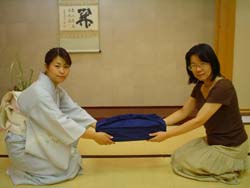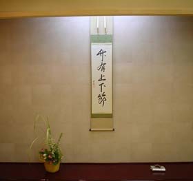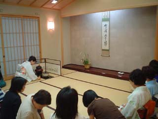 | 平日夕刻からの準備で 仕事が終わってからの集合でしたので、準備が大変でしたが、新しい会場にて 清々しい気持ちで行うことができました。 今回のテーマ 「祈り」ですが、(幸せな門出を祈る)気持ちをこめたお道具とさせていただきました。 様々な思いを込めての祈りですが、観音寺青年部では結婚される方また適齢期の方も多く、幹事の先生のお嬢様もご結婚されるなど身近に感じるお嫁入り、晴れの日の門出に祈りをこめてお茶会を開催いたしました。 洗い茶巾に夏らしいお取合せのお道具で、お菓子を夏ころもとさせていただきました。 6月に行われた地区大会で香川支部の他青年部の方と友情が深められましたし、今回のリレー茶会では支部を超えての絆が深められていくように思います。それぞれの青年部の特徴がしるされた旗には全国大会への意気込みも感じられました。 今回のリレー茶会にご出席いただきました先生方と、お家元のお軸や大宗匠お作のお茶杓をご一緒にお拝見させていただき、お道具に込められた意味をお話いたしました。こういった機会を作っていただけましたことを感謝いたしております。 |