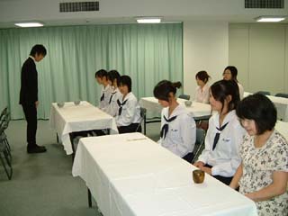 | 真夏を思わせる日差しの中、東播支部高砂の松青年部、播磨支部城北・城南青年部、西播磨支部ゆめさき・千種青年部が合同で、親先生方をはじめ、社中の方々、学校茶道(兵庫大学)のご協力を得ながら、開催いたしました。 公共施設である加古川産業会館を会場に選び、お点前を立礼にしたことで、地域の皆様の参加が得やすくなり、茶道裏千家のお茶に親しみを持っていただけたのではないかと思います。 お点前は兵庫大学の学生さんに全席担当していただいたほか、兵庫県立加古川東高校茶道部の生徒さんがクラブ活動の時間を利用して参加くださるなど、学校茶道との積極的な連携も図ることができました。 加古川東高校の先生から「身近な会場で、お茶会に接する機会に恵まれました」と感謝の言葉をいただき、お家元ご染筆のお軸と大宗匠のお茶杓を目の前にして、大変感激しておられました。 最後になりましたが、この貴重な機会を与えてくださいました大宗匠・御家元、ご協力をいただいた多くの方々に、心から感謝申し上げます。ありがとうございました。 |