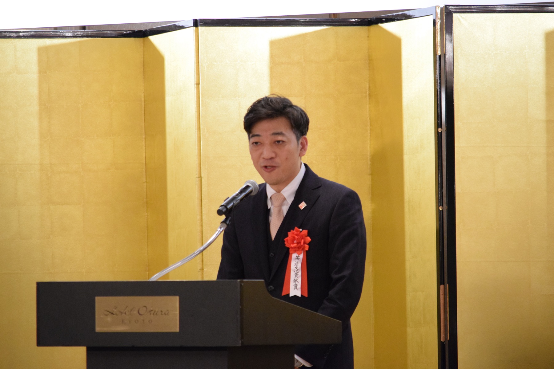 本庄八郎氏は、授賞式当日、ご自身が主催される行事で欠席のため、代理でご子息の伊藤園代表取締役副社長 本庄周介氏(淡交会東京第八東支部副支部長)がお受けになりました。