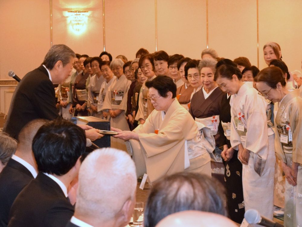 淡交会の会員育成に顕著な功績のあった18名が淡交会育成功労者表彰を受賞。青年部の会員育成に顕著な功績のあった12名が青年部育成功労者表彰を受賞(計24名出席)。