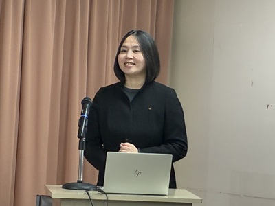 続いて弘田佳代子 国際部部長より「裏千家の国際活動」と題して、国内外での外国人へ向けた茶道普及活動等について、写真や資料を交えながら紹介がありました。