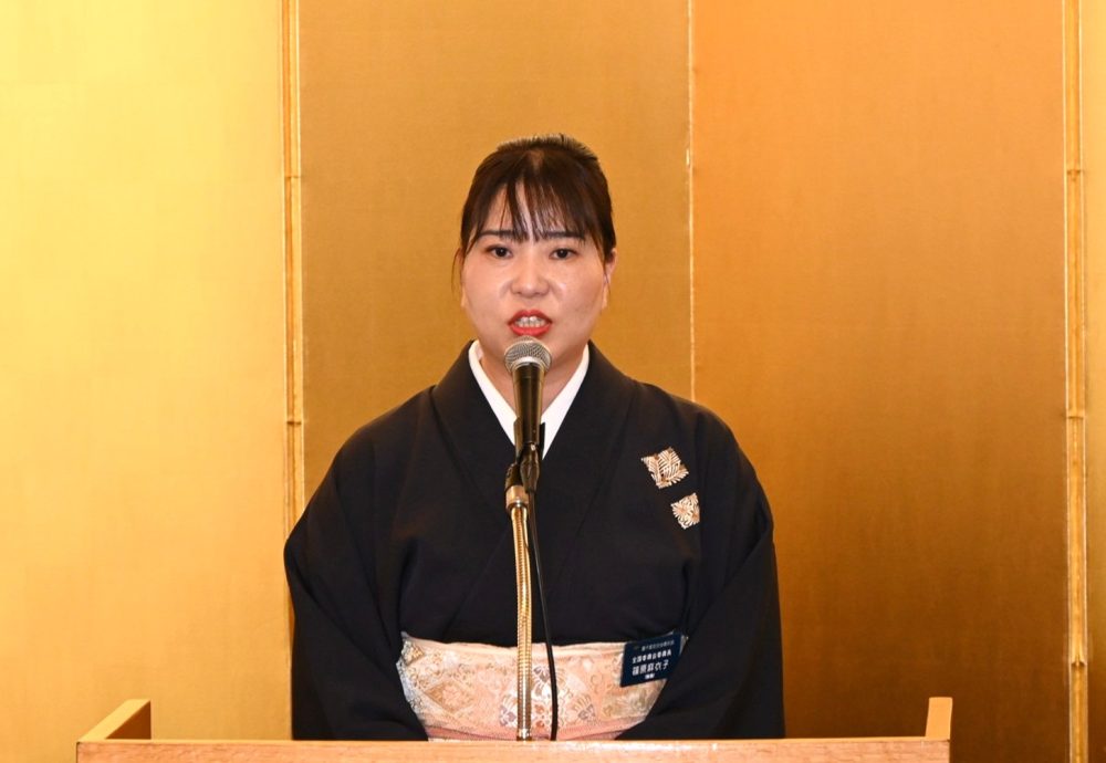 千 宗史若宗匠の挨拶に続き、篠原麻衣子全国委員会委員長、栁川詔一全国代表者会議議長より挨拶がありました。