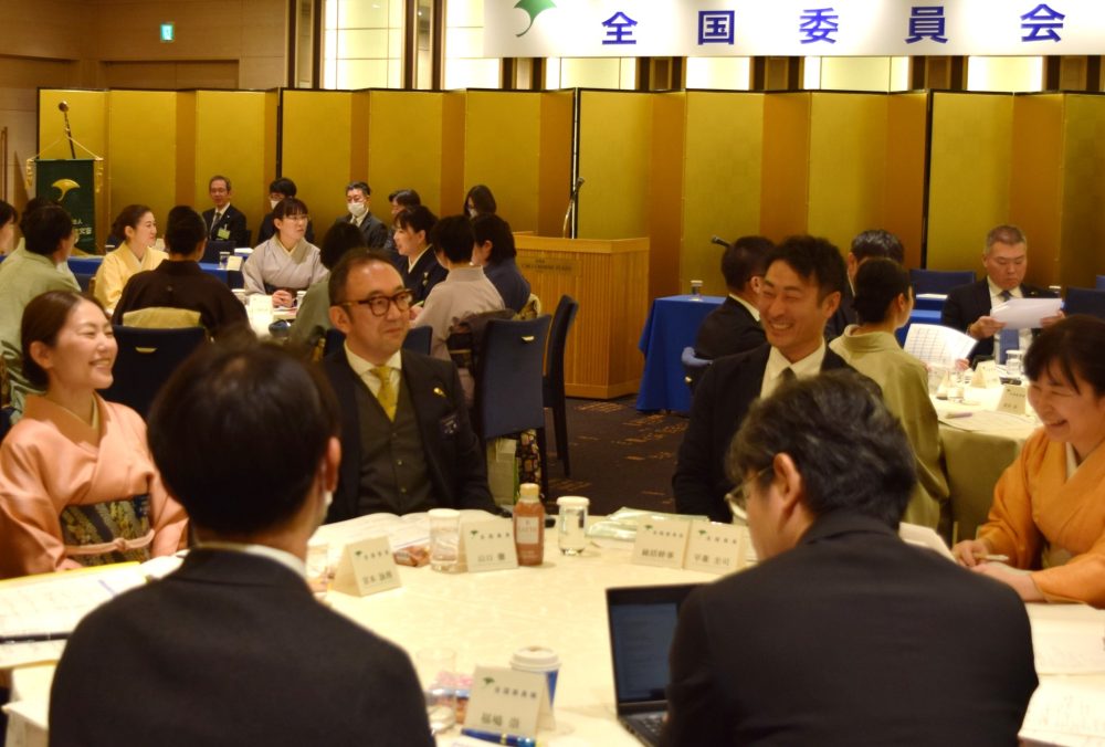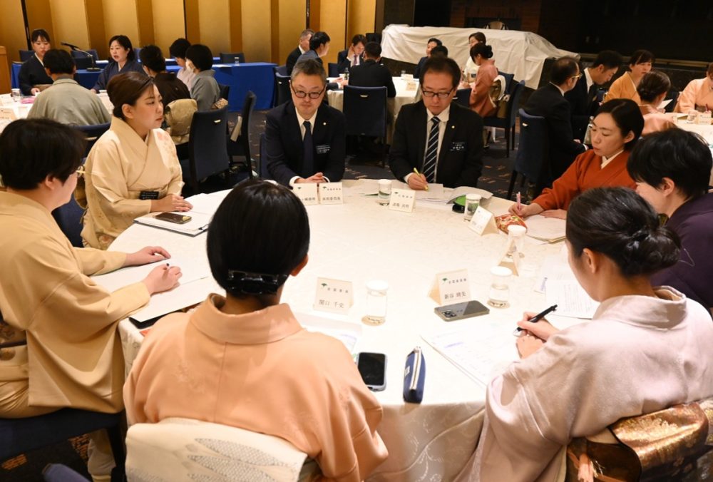前日に続いての研修テーマのもと、栁川議長より「青年茶人 京都のつどい2026」実行委員会の取り組みについての説明があり、続いてブロック長・部長グループに分かれて以下のテーマにてディスカッションがなされました。