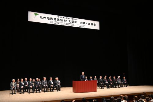 本行事は淡交会の会員相互の交流と親睦を目的に開催、来賓の福岡県知事 服部誠太郎氏(博多福岡支部連合会顧問)、久留米市長 原口新五氏(久留米支部顧問)をはじめ地区内各支部役員・会員約1,100名が参集しました。