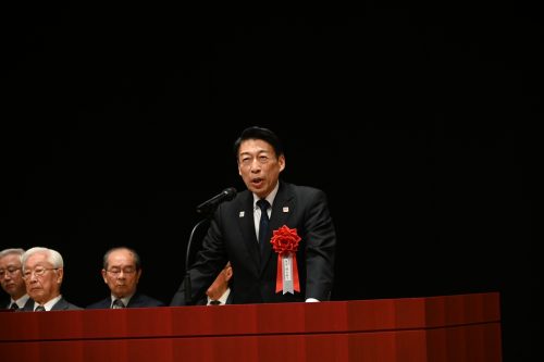 開会にあたり、石原地区長、永田支部長より主催者挨拶。家元に続き、服部知事、原口市長より挨拶がありました。