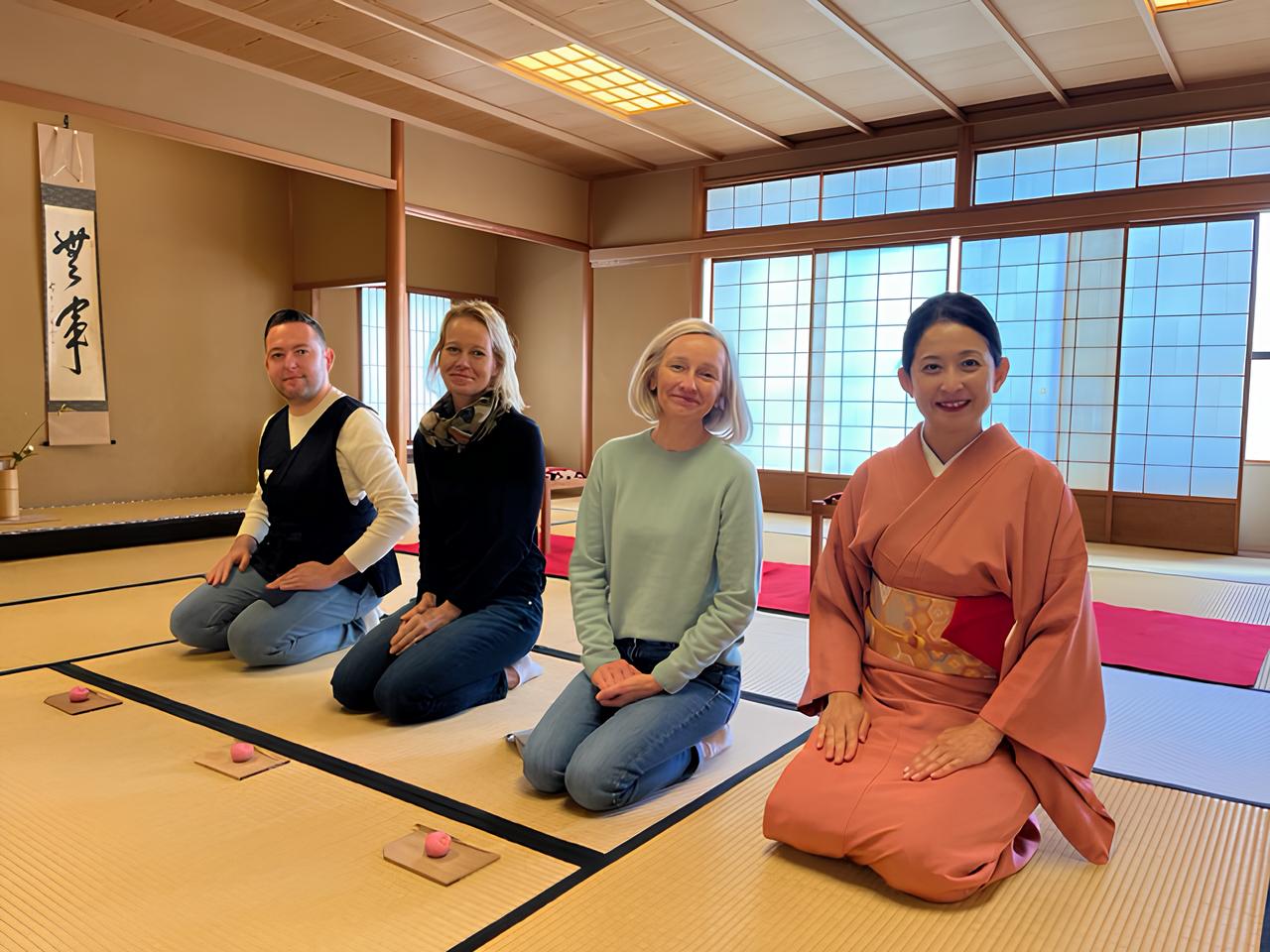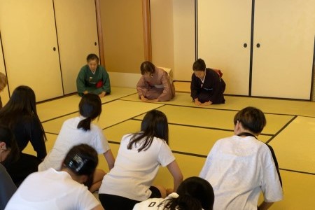 茶道の中のお辞儀をはじめとする所作を一緒に行いながら、おもてなしの中にある日本の心を体験を通して感じることができるプログラムです。