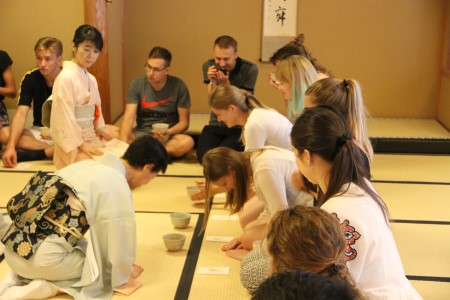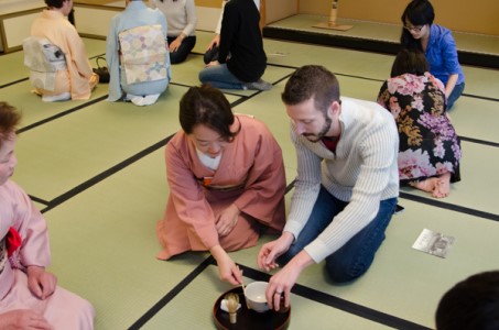 参加者全員がお客様として実際に抹茶とお菓子を召し上がって頂きながら、簡単な作法を体験して頂きます。