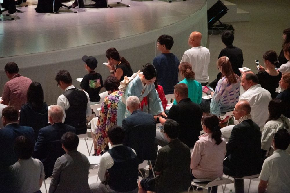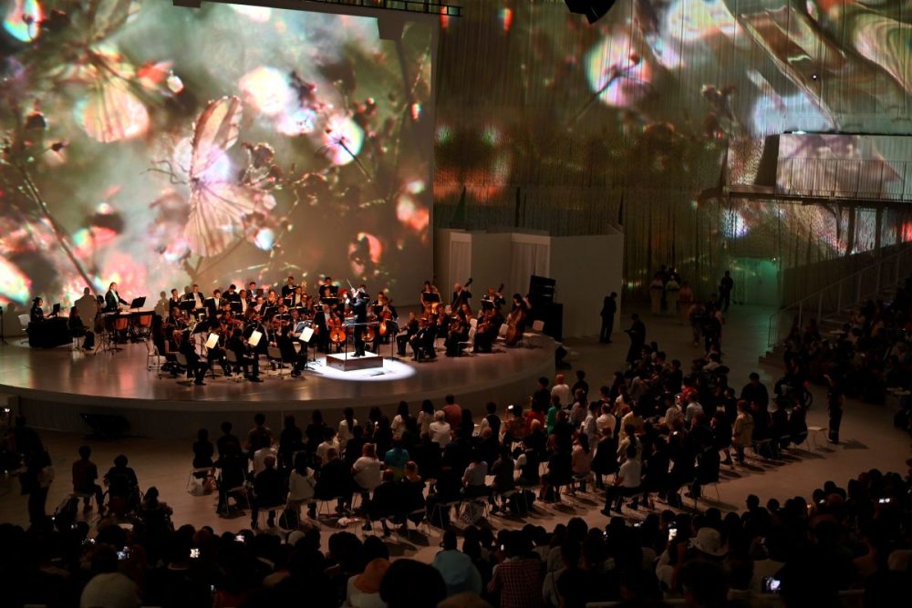 チェコ共和国のピルゼン・フィルハーモニー管弦楽団によるドヴォルザーク「新世界より」の演奏と生成CGの映像が映し出される中、限定100名の参加者に点て出しによる呈茶が行われました。