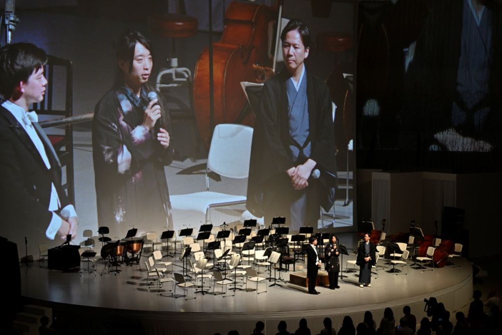 本イベントは落合氏が提唱する「計算機自然(デジタルネイチャー)」を茶の湯の精神に重ね合わせ、点前と管弦楽団による演奏、生成CG、多層音響、照明、茶道具が一体となる総合芸術的茶会として開催され、事前予約を行った約2,000名が参加しました。