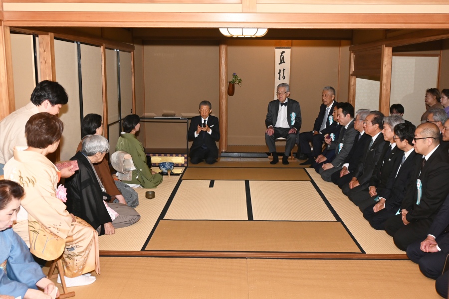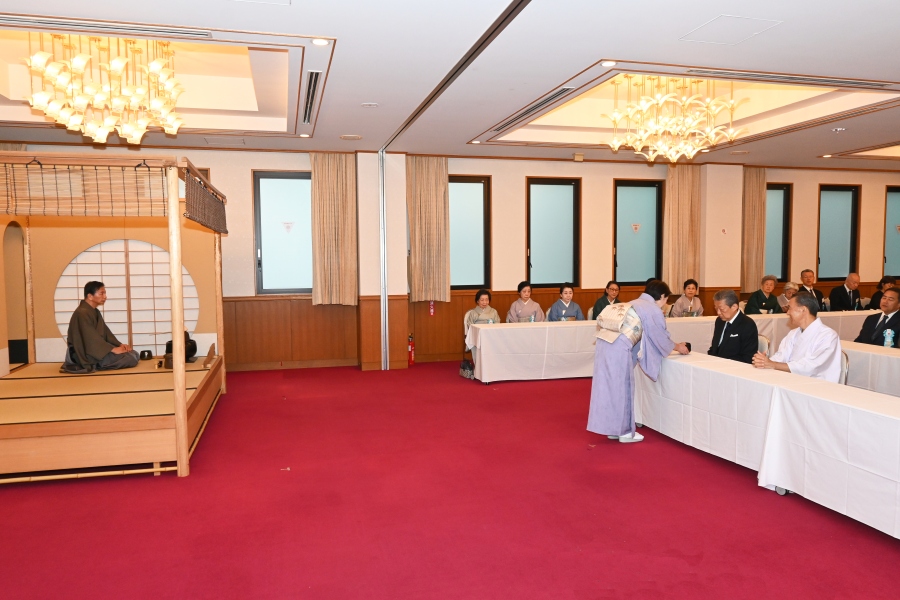 献茶式に際して、洗心亭に東京第二東支部(若林隆壽名誉支部長、椿 邦司支部長)の江副みどり氏(顧問)担当の濃茶席、靖國会館二階に東京第六西支部(越智隆雄支部長)の吉田幸一氏(副支部長)担当の薄茶席、啓昭館に東京第七西支部(榎本誠一支部長)の渡辺宗芳氏(副幹事長)担当の立礼席が設けられました。