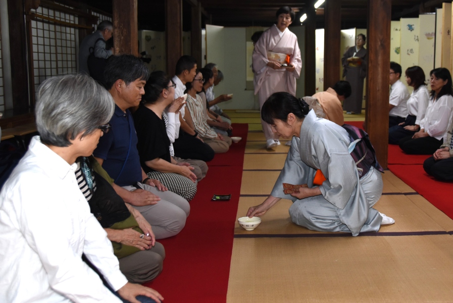 献茶式に際して、僧坊に淡交会奈良支部(筒井寛昭支部長)担当の薄茶席が設けられ、参列者に一碗が呈されました。