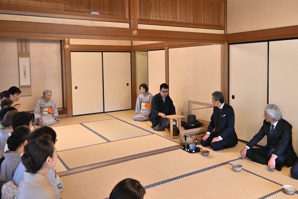 午前10 時、家元は本宮に入り、点前座に着座。濃茶と薄茶を謹点し、ご祭神に捧げられました。