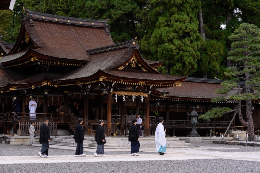 同社は、天照大神をはじめとする八百万の神々の創造主である伊邪那岐大神と伊邪那美大神の二柱をご祭神としてお祀りしています。古くから延命長寿や縁結び、厄除けの神様として崇敬され、中世から近世にかけては武家や庶民にも信仰が広まり、伊勢神宮や熊野三山とともに全国各地からの参詣者で賑わいました。
