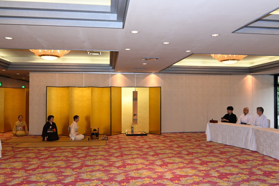 献茶式に際して、参集殿二階「莚寿の間」に淡交会滋賀支部(河本英典支部長)担当の協賛席が設けられ、参列者に一碗が呈されました。