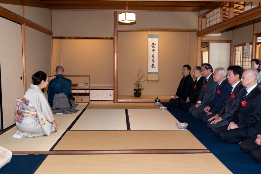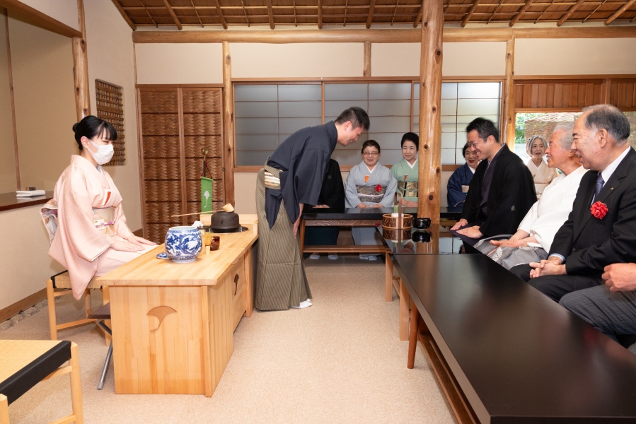 献茶式に際して、澄心軒に淡交会大阪西支部(田所伸浩支部長)担当の本席、玉秀庵に同青年部担当の副席が設けられ、参列者に一碗が呈されました。