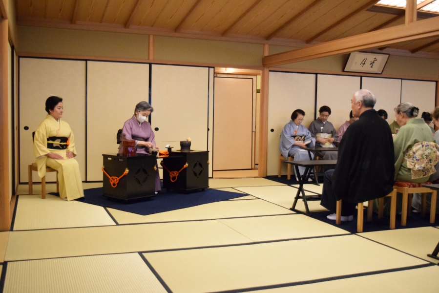 なお、平成茶室「看月の間」と茶道会館に副席が設けられ、平成茶室では宗旦居士ゆかりの銀杏餅にて一服が呈されました。