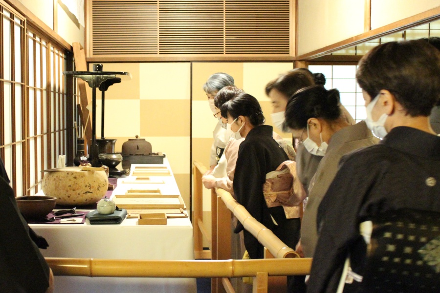 茶道会館では、このたびの宗旦忌のために取り合わされた道具が展観されました。