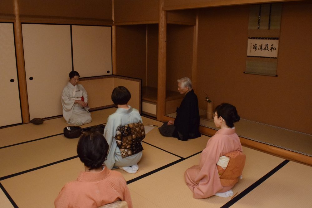期間中、今日庵業躰の指導のもと基本点前、小習事、四ヶ伝、行之行台子の実技講習が行われました。