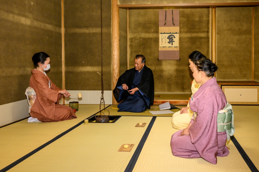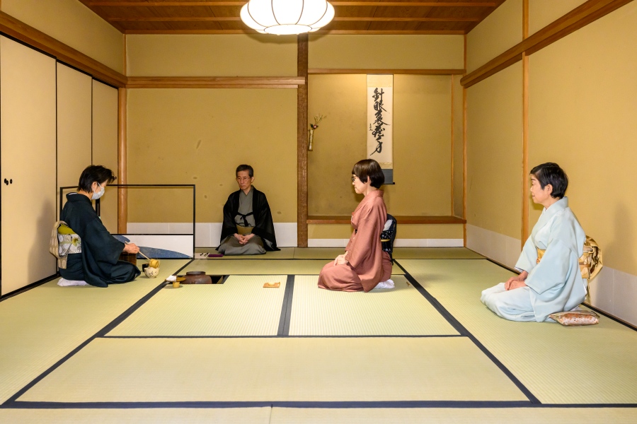 期間中は、家元、今日庵業躰の指導のもと、割稽古に始まり、基本点前や小習事を中心とした内容で研修が行われました。
